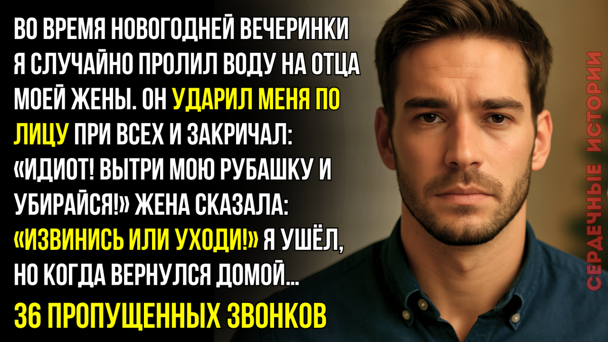 Кулак Игоря Петровича Боголюбского с силой молота ударил меня по лицу, заставив голову резко дёрнуться в сторону. Глухой звук удара эхом разнёсся по залу особняка, моментально заглушив весёлый смех и тихую мелодию новогодней музыки. На мгновение в гостиной воцарилась полная тишина: около пятидесяти гостей смотрели на меня в ужасе, замерев с бокалами шампанского в руках. Огни трёхметровой ёлки переливались, создавая почти абсурдный контраст с кровью, тяжёлыми каплями стекавшей из моего разбитого носа.