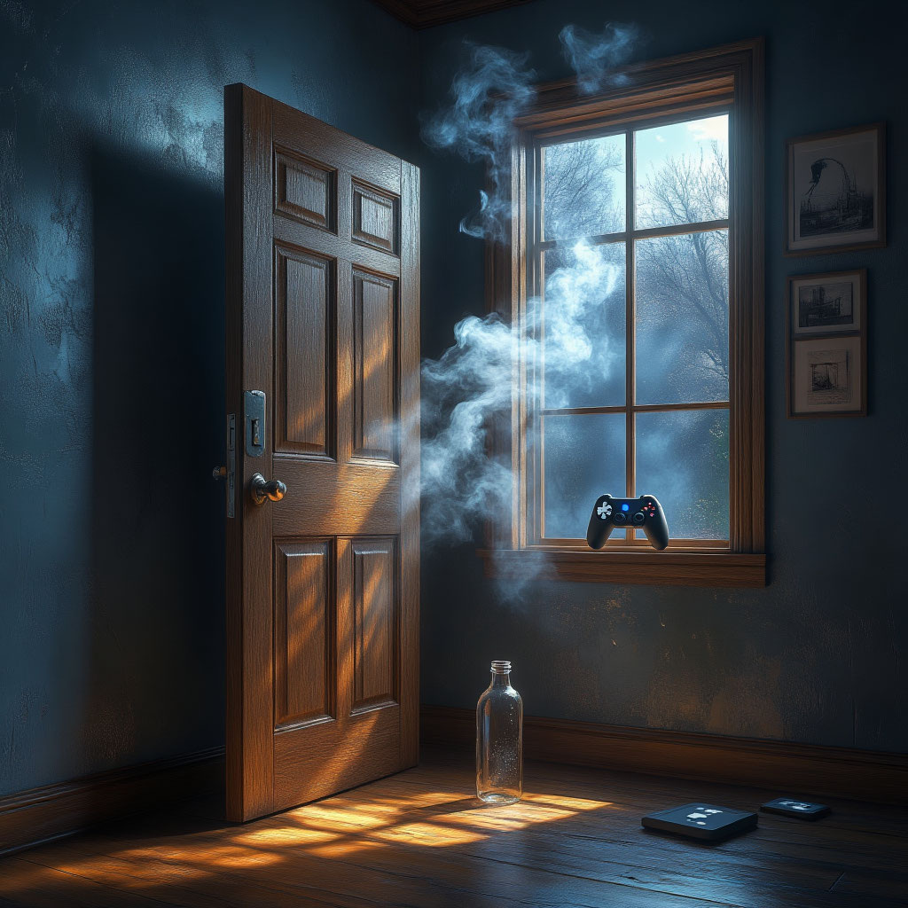 Представьте, что ваша жизнь — это комната. Если в ней токсично, холодно и опасно (ссоры, травля, одиночество), вы захотите её покинуть. Но дверь заперта. И тогда вы находите окно — способ выпрыгнуть в другой, более комфортный мир, хоть и ненадолго.