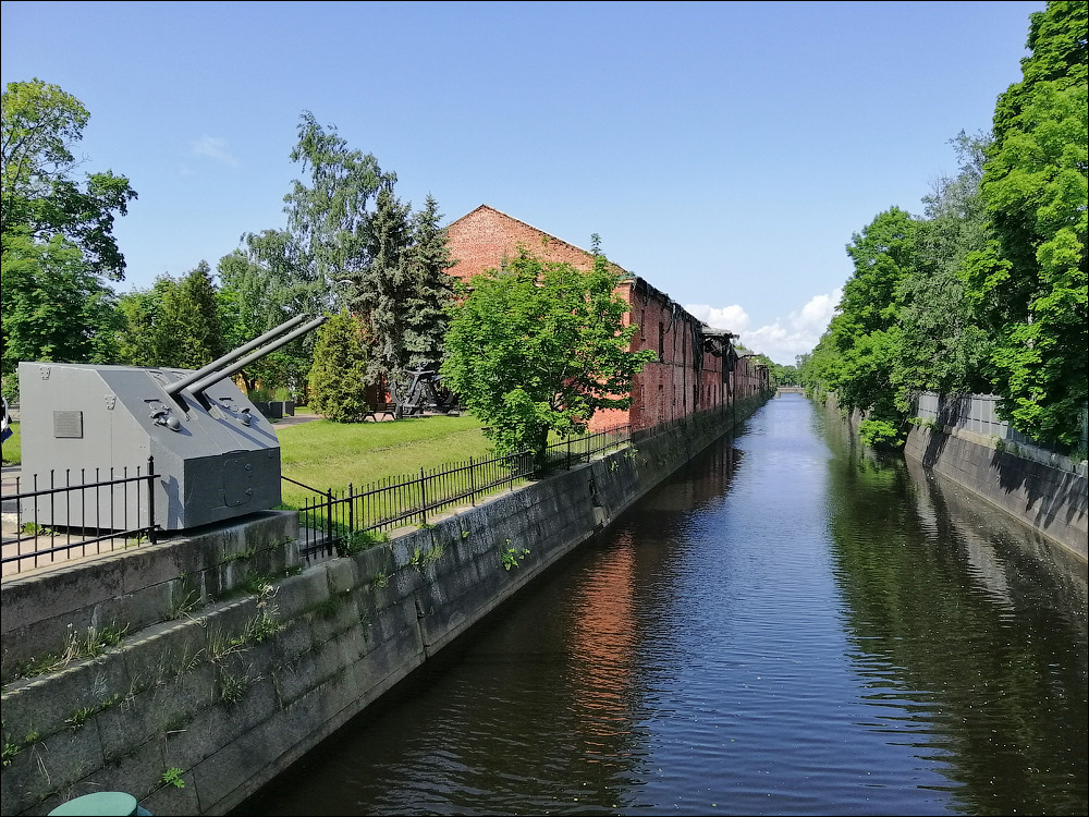 Когда-то давно попасть в Кронштадт был тот ещё квест. А теперь — полчаса на метро, и автобус-экспресс мчит нас по дамбе посреди моря! За окном островки трав, далёкие берега, острова и форты… Сорок минут пути, и мы в городе — вокруг солнечные улицы, нарядные дома. И когда вышли у Дома быта, и погрузились в светотени аллей, на которых цвела сирень — появилось вдруг ощущение, что Кронштадт чем-то похож на Балтийск. А кирпичные стены провиантских магазинов, тянущихся за рвом Обводного канала напомнили и Калининград.
