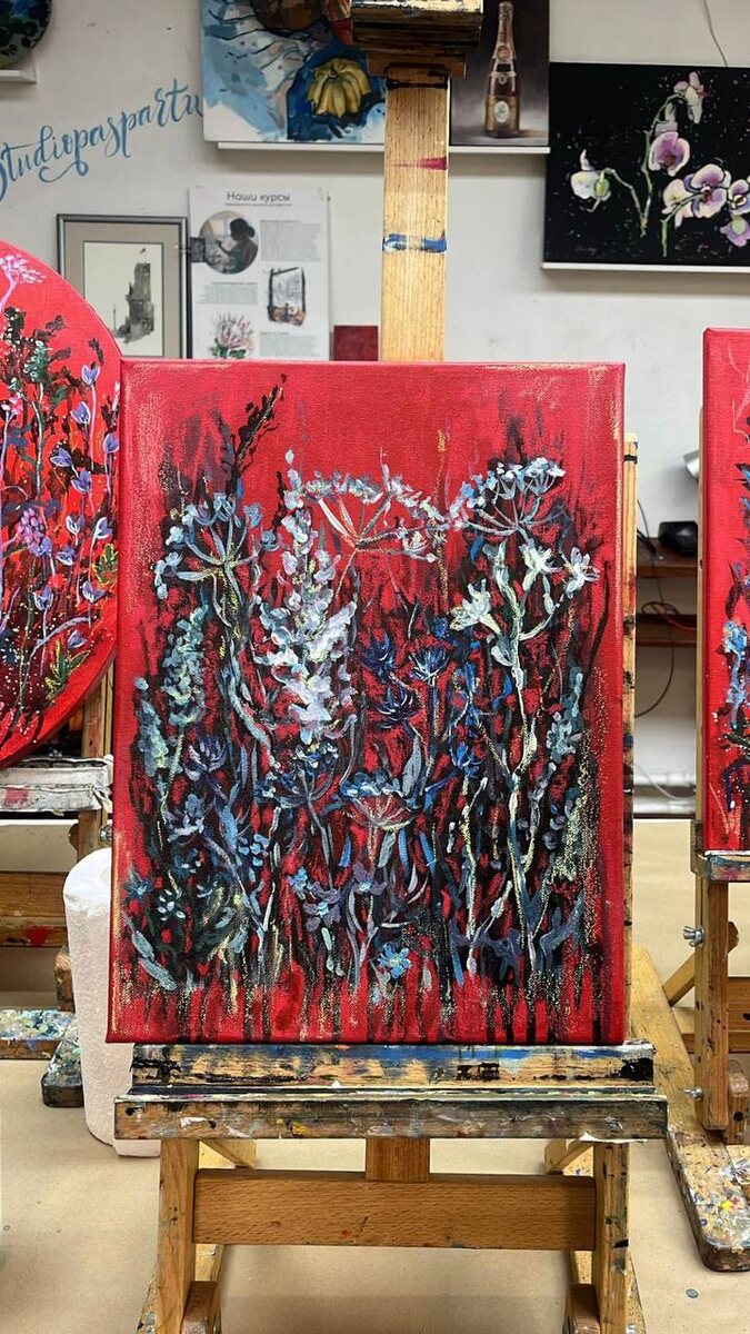 ❤️ В выходные прошёл большой красивый арт-бранч в Царицыно в поэтическом кафе Есения, мастер-класс «Силуэты на красном» (двое участниц это