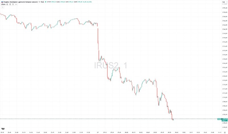 Индекс Мосбиржи впервые с 20 декабря 2024 года опустился ниже 2500 пунктов