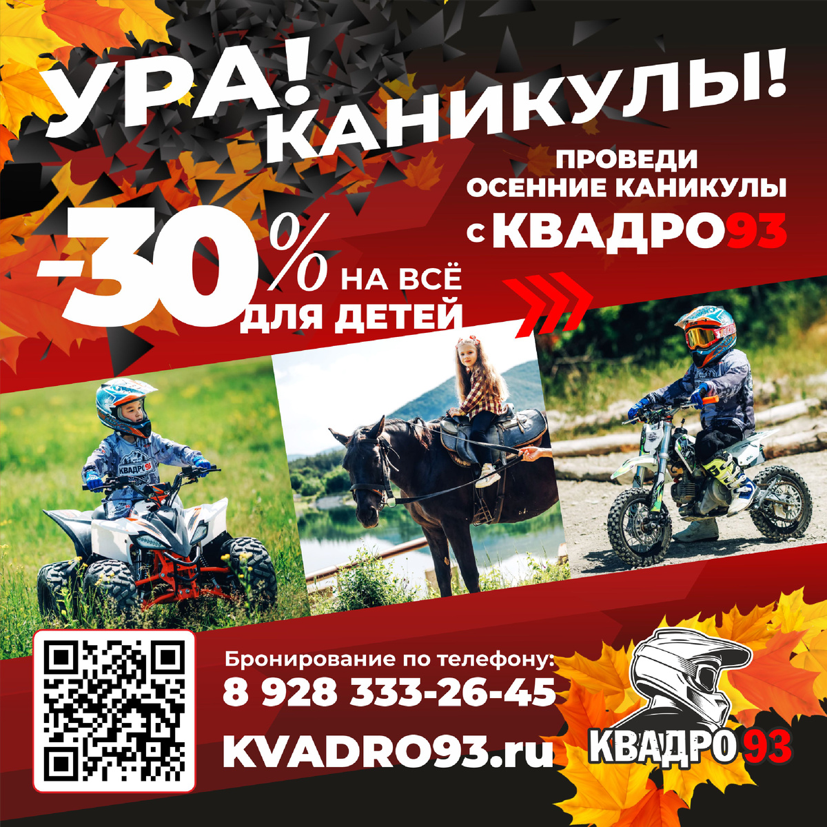 Драйв-парк КВАДРО93 приглашает детей и родителей провести каникулы в Геленджике весело, безопасно и с выгодой —