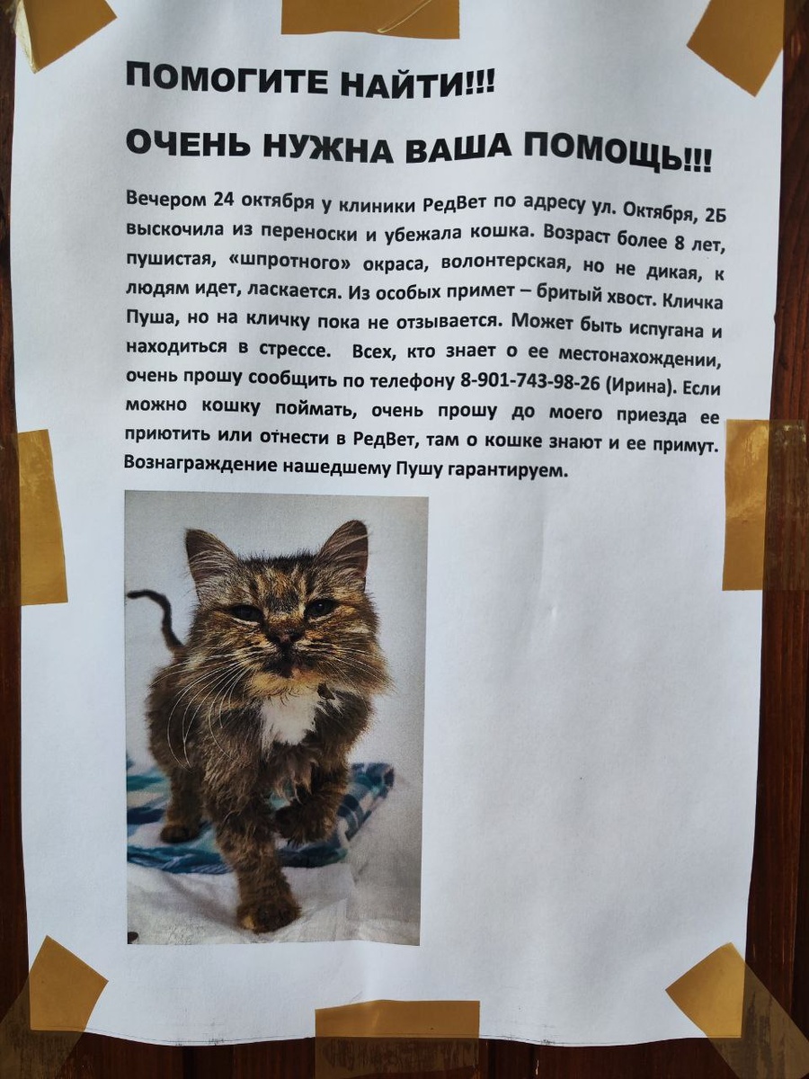 ΠΎΡΡ ΠΏΠΎΠΌΠΎΡΡ Π½Π°ΠΉΡΠΈ ΠΊΠΎΡΠ° ΠΠ΅ΡΠ΅ΡΠΎΠΌ 24 ΠΎΠΊΡΡΠ±ΡΡ Ρ ΠΊΠ»ΠΈΠ½ΠΈΠΊΠΈ Π Π΅Π΄ΠΠ΅Ρ ΠΏΠΎ Π°Π΄ΡΠ΅ΡΡ ΡΠ». ΠΠΊΡΡΠ±ΡΡ, 25 Π²ΡΡΠΊΠΎΡΠΈΠ»Π° ΠΈΠ· ΠΏΠ΅ΡΠ΅Π½ΠΎΡΠΊΠΈ ΠΈ ΡΠ±Π΅ΠΆΠ°Π»Π° ΠΊΠΎΡΠΊΠ°. ΠΠΎΠ·ΡΠ°ΡΡ Π±ΠΎΠ»Π΅Π΅ 8 Π»Π΅Ρ, ΠΏΡΡΠΈΡΡΠ°Ρ, Β«ΡΠΏΡΠΎΡΠ½ΠΎΠ³ΠΎΒ» ΠΎΠΊΡΠ°ΡΠ°, Π²ΠΎΠ»ΠΎΠ½ΡΠ΅ΡΡΠΊΠ°Ρ, Π½ΠΎ Π½Π΅ Π΄ΠΈΠΊΠ°Ρ, ΠΊ Π»ΡΠ΄ΡΠΌ ΠΈΠ΄Π΅Ρ, Π»Π°ΡΠΊΠ°Π΅ΡΡΡ. ΠΠ· ΠΎΡΠΎΠ±ΡΡ