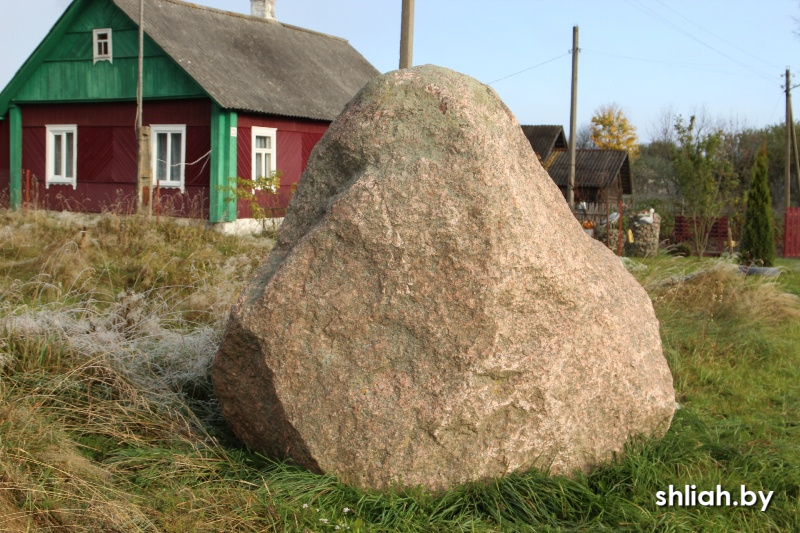 В деревне Рачкяны несколько лет назад появилась природная достопримечательность – огромный камень треугольной формы. Местные жители видят на нем лицо человека. Валун высотой в человеческий рост лежал на сельскохозяйственных угодьях. Техника, которая работала на полях, объезжала его, пока не было решено убрать мешавший камень. Немало усилий пришлось приложить, чтобы вытащить его из земли и переместить на обочину. Позже ксёндз, который служит в Жупранском костёле, хотел перевезти валун на территорию храма и сделать из него постамент под фигуру Божьей Матери. Различная техника пыталась справиться с задачей, но удалось лишь передвинуть камень бульдозером ближе к дороге. С тех пор он – многовековой немой свидетель минувших дней – стоит между жилыми домами в конце деревни. Оксана ГЕЙБОВИЧ Фото автора