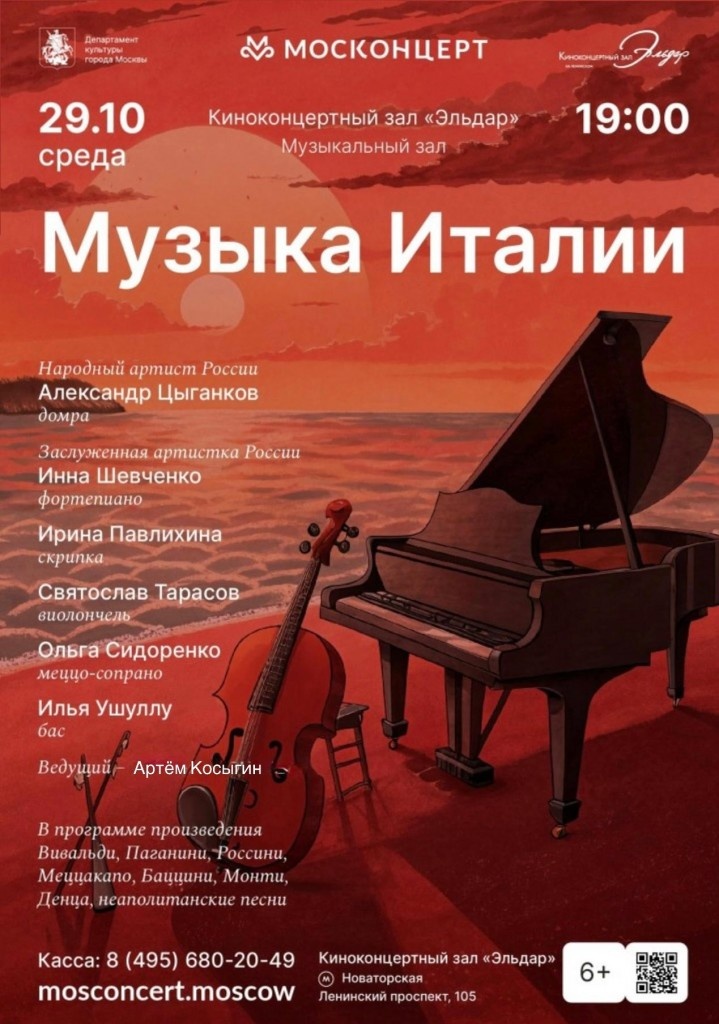 АФИША! 29 ОКТЯБРЯ, 19.00, КИНОКОНЦЕРТНЫЙ ЗАЛ «ЭЛЬДАР», "МУЗЫКА ИТАЛИИ"!