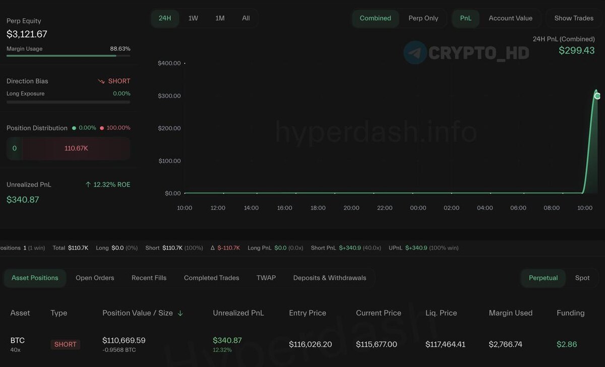 👏 Джеймс Уинн снова вернулся! Он получил 1854,54 #USDC с рефералок и сразу зарядил шорт по BTC с 40x плечом на $110,000 (следить) Точка входа: $116,026. Ликвидация: $117,464. Напомним: несколько месяцев назад позиции трейдера доходили до миллиарда $$$... Ранее: ожидает дамп фонды Crypto Headlines