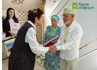 💍 Казиледән Ләүлия һәм Мәхмүт Дияровлар зөбәрҗәт туй медальләрен алышты, кызыл туйдагы кебек китапка кул куйды