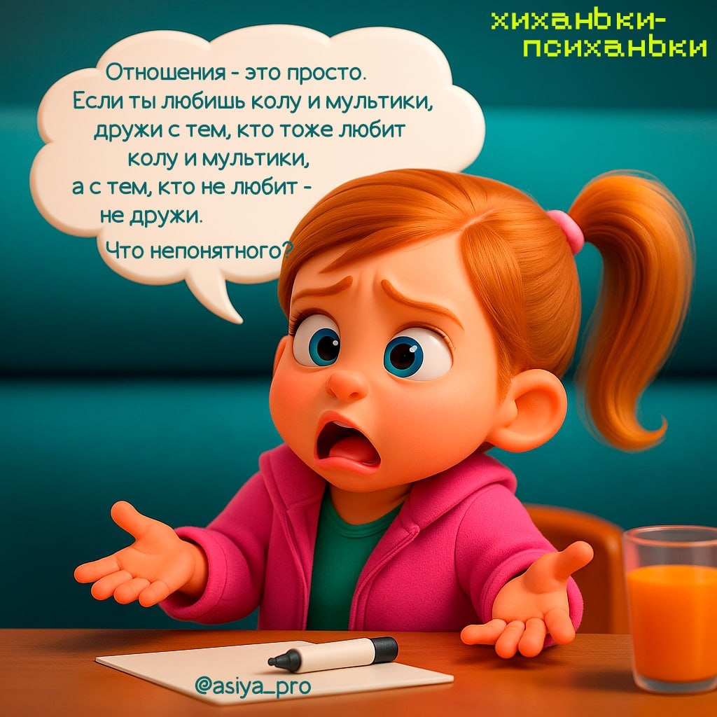 👣 Сегодня понедельник, решила начать эту неделю с мема, а дальше постепенно раскрою эту тему - как мы все усложняем и что с этим делать? Иногда мы усложняем отношения до уровня квантовой физики. А вся суть - вот она - на детской картинке. Хочется простоты: быть с теми, с кем легко, весело и по-доброму совпадает. А если приходится постоянно объяснять, почему вы такие, - может, просто не ваши мультики? 📸 поделитесь в комментариях - было такое? ⬇️ 🤩🤩🤩🤩🤩🤩🤩🤩🤩🤩🤩 рубрика "Хиханьки-ПСИханьки" 💡 рубрика, где мы смеемся над привычными ситуациями в отношениях и между делом понимаем, как они работают на самом деле #хиханьки_ПСИханьки@asiya_pro #мем@asiya_pro