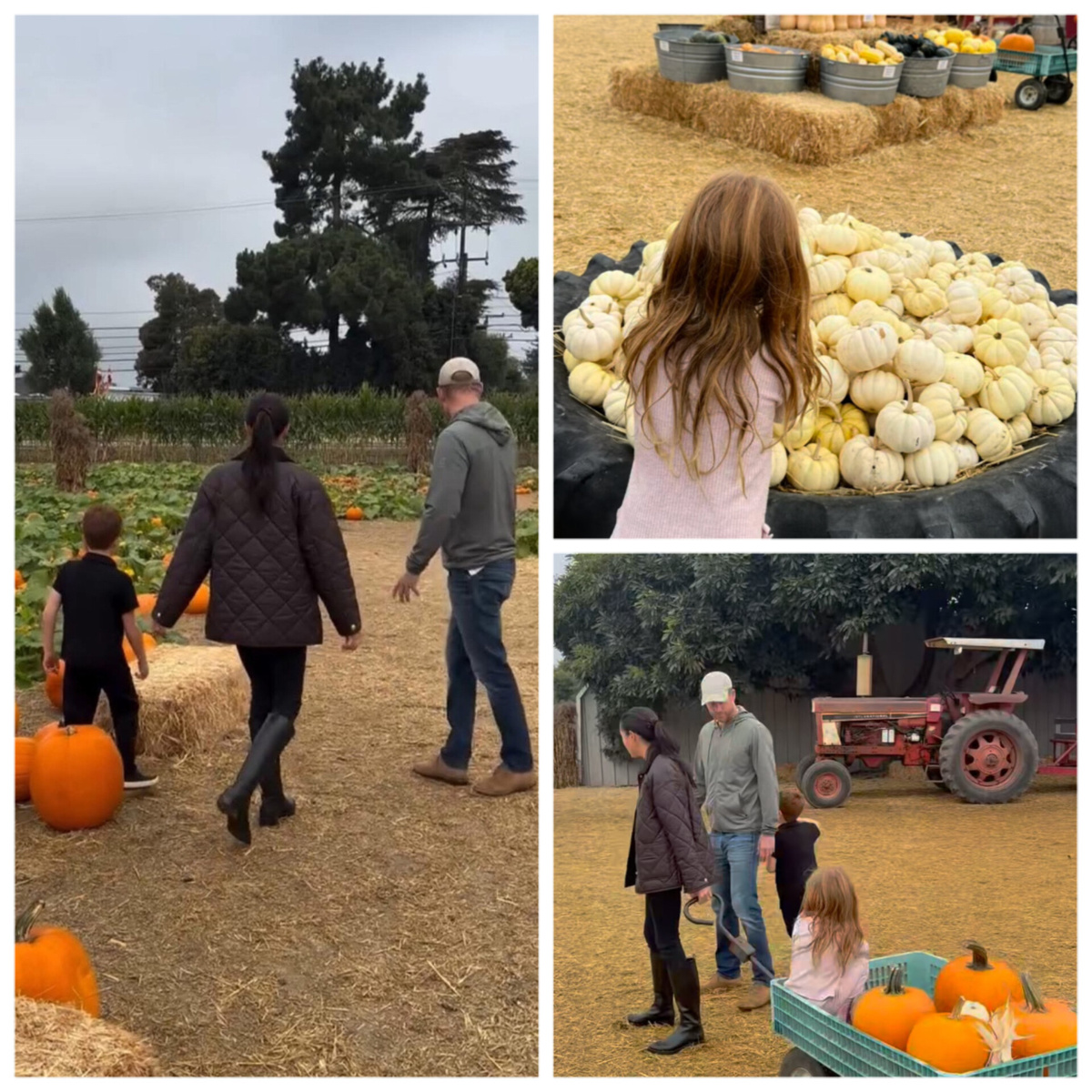 Монтеситская герцогиня опубликовала новые семейные видеоролики с лаконичным сообщением "Счастливого воскресенья". Судя по кадрам, Меган и ее родные приобщились к суете в честь Дня Всех Святых, поскольку главное место в видео занимали тыквы. Много тыкв. Герцогиня продемонстрировала также и детей, но, по сложившейся традиции, все герои ролика изображены спиной к камере (вероятно, чтобы не было контраста со спинами Арчи и Лилибет). Юный принц бегал между грядками с большой оранжевой тыквой, а принцесса стояла над грудой маленьких белых тыковок. После девочка сидит в тележке с мини-плодами и Меган тащила ее на буксире. Другой кадр демонстрирует, как Арчи ходит между рядами, выбирая тыкву, а Меган и Гарри наблюдают за ним, взявшись за руки. Это было первое видео с детьми в более-менее чётком качестве. У Арчи зритель видит медно-каштановые волосы, а Лилибет, как обычно, предстала простоволосая в розовом костюмчике. В ролике мелькает и друг семьи (британские СМИ называют ег