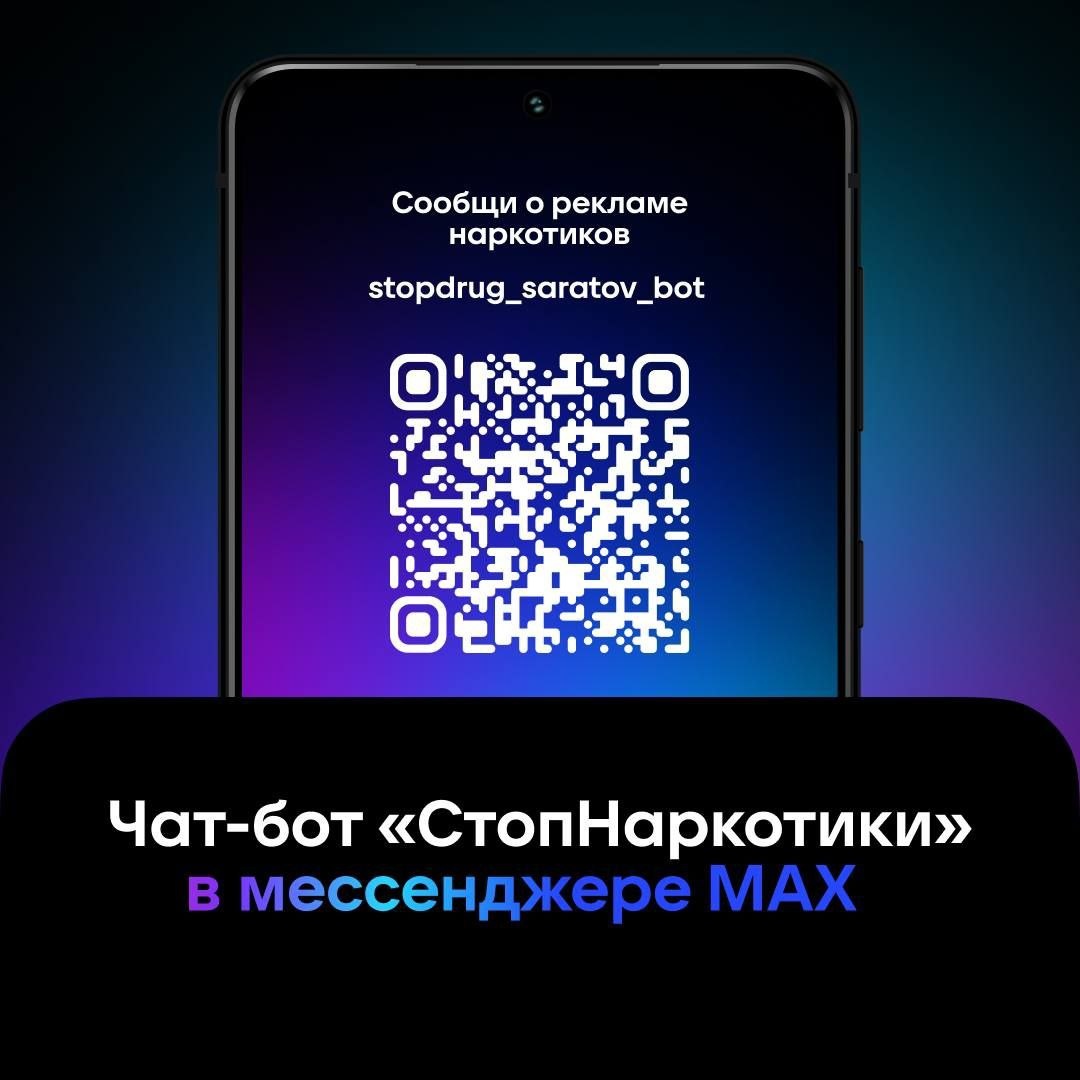 Увидел на улице объявление, рекламирующее наркотики? Минцифры Саратовской области разработало специальный чат-бот в мессенджере МАХ. Он принимает сообщения о местах рекламы наркотических средств для ее быстрого устранения уполномоченными органами. Бот позволяет отправить фото самого объявления, а также геолокацию его размещения и исключает возможные фейковые сообщения. Ссылка на чат-бот «СтопНаркотики» в мессенджере МАХ: https://max.ru/stopdrug_saratov_bot