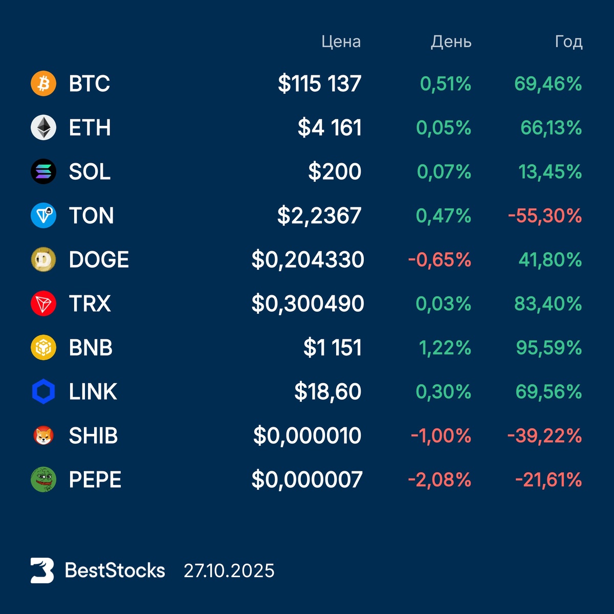 Курсы основных криптовалют: Bitcoin, Etherium, Solana, Toncoin, Dogecoin, TRON, BNB, Chainlink, Pepe, Shiba Inu на текущий момент #крипта #crypto #курс #BTC #ETH #SOL #TON #DOGE #TRX #BNB #LINKUSD #PEPEUSD #SHIBUSD ••••• 🏆 Сделали для вас список топ-25 лучших аналитиков в России и во всём мире. По каждому подробная информация: показатели доходности, успешность прогнозов и история рекомендаций по каждой акции. Уникальный инструмент, доступный на русском языке.
