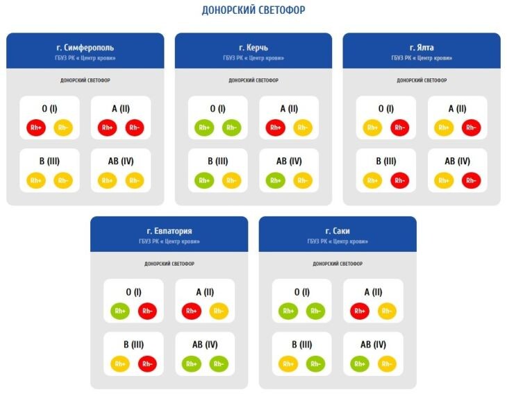 «Очень ждем доноров с группой крови и резус-фактором, которые отмечены в светофоре красным и желтым! Обязательно возьмите с собой паспорт и СНИЛС. Надеемся на вашу помощь в пополнении запасов», – рассказали корреспонденту Крымского информационного агентства в «Центре крови».