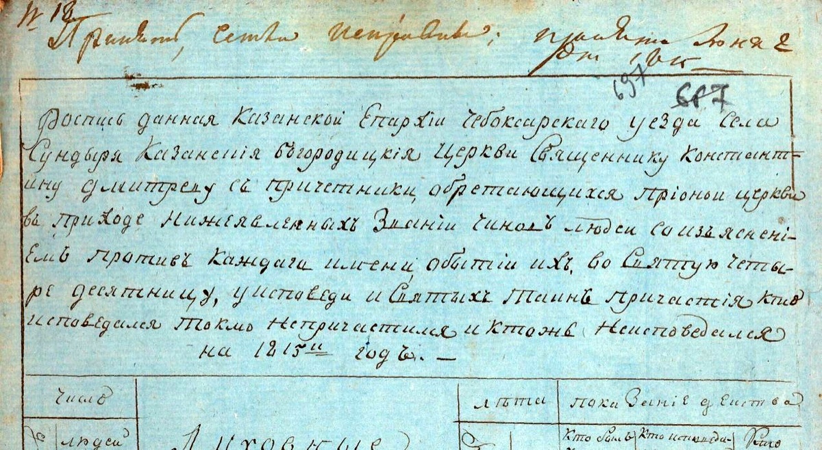 1815 год. Село Сундырь. Чебоксарский уезд. Матвеевский Осип Иванович. Духовные книги.