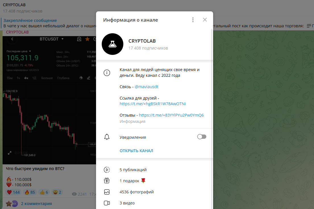 @Телеграм-канал CryptoLab стремительно набирает популярность среди начинающих инвесторов. Админ проекта, трейдер под ником Maviausdt (Данил), обещает подписчикам лёгкий доход на сигналах по криптовалюте.