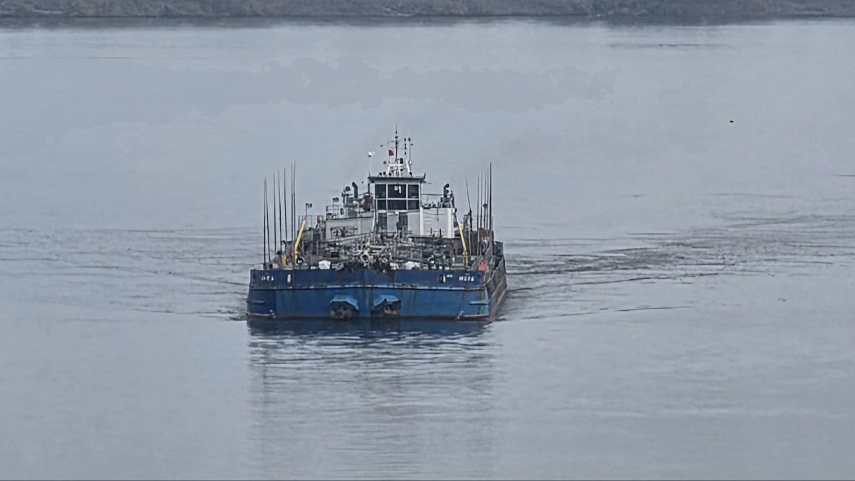 Толкач-буксир ЕВРОСТАР-3 в составе с нефтеналивной баржой Мира идёт по подходному каналу ВДСК