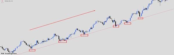 Вот, взгляни на график. Видишь, как цена несколько раз коснулась одной и той же воображаемой линии и отскочила? Это и есть работающая трендовая линия. Она становится уровнем поддержки при восходящем тренде и сопротивления — при нисходящем.