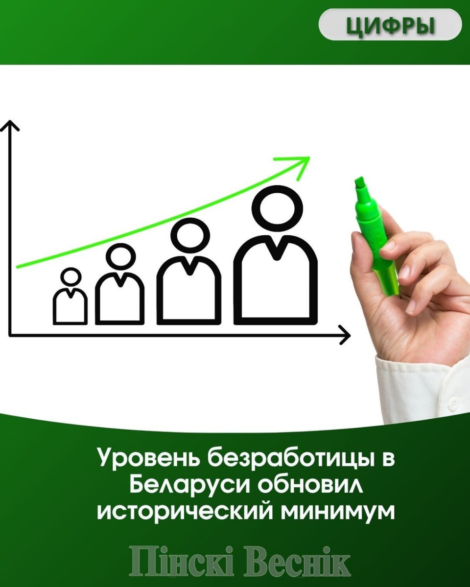 ⚡️Уровень безработицы в Беларуси обновил исторический минимум, снизившись до 2,4% в III квартале после 2,6% во II квартале 2025 года, сообщает Евразийский банк развития (ЕАБР). 🔵Причем давление на рынок труда ослабевает: число размещенных вакансий сокращается уже три месяца подряд и достигло минимума с начала года. Ситуация на рынке труда стабилизируется на фоне замедления роста выпуска. Политика властей по вовлечению граждан в трудовую деятельность способствовала росту занятости до исторического максимума — 69,1%. 📍📍@Пинский Вестник 📱ЮТУБ 📱САЙТ 📱ИНСТ 📱ВК 📱ОК 📱ФЕ 📱TikTok 📱Прислать новость