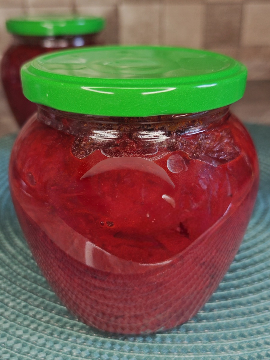 Приготовьте борщевую заправку — и вы сэкономите время на приготовление борща, сохраните вкус и аромат осени, а также средства, ведь сейчас овощи самые дешёвые. Кроме того, борщ у вас всегда будет одинаково вкусным. Выход: 12 банок по 500 мл Ингредиенты: Помидоры — 5,5 кг Лук репчатый — 1,5 кг Морковь — 1,2 кг Свёкла — 2 кг Масло растительное — 370 мл Соль — 90 г Сахар — 120 г Чёрный молотый перец — 1 ч.л. Лавровый лист — 6 шт. Чеснок — 60 г Уксус 9% — 100 мл Приготовление: Помидоры разрежьте пополам и проварите 10 минут. Затем выложите их на сито, чтобы стекла лишняя жидкость. После этого перебейте блендером и протрите через сито — получится густое, концентрированное пюре без семечек и шкурок. (Можно просто пропустить томаты через мясорубку, если вам так удобнее.) Лук нарежьте так, как вы обычно делаете для борща (я режу четвертькольцами). Морковь и свёклу натрите на тёрке или измельчите с помощью кухонного комбайна. В кастрюле с толстым дном разогрейте растительное масло. Сначала о