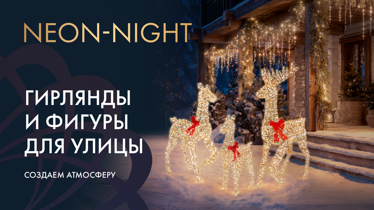 В статье на примере одного участка покажем, как легко и быстро можно преобразить загородный дом к праздникам с помощью гирлянд и декоративных фигур NEON-NIGHT. Все решения вы сможете повторить, а при желании — реализовать свои идеи.