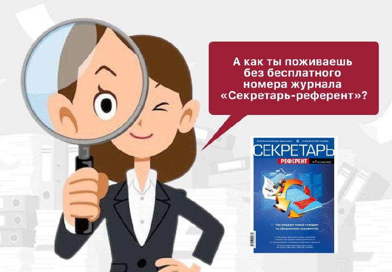 Дарим номер журнала «Секретарь-референт»! Читайте в бесплатном номере журнала: • новый ГОСТ Р 7.0.97-2025 по оформлению документов: какие изменения и дополнения внесены; • как контролировать исполнение распорядительных документов; • как сократить потери документов в СЭД; • как передать документы на хранение в случае ликвидации организации; • как по инициативе работодателя ввести режим неполного рабочего времени; • каковы функции работника, отвечающего за контроль исполнения документов и поручений; • и многое другое. Получить бесплатный номер