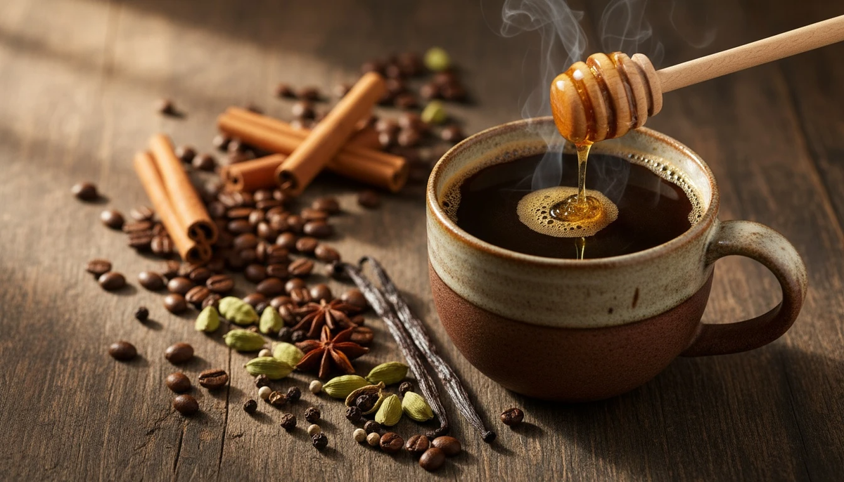 Осень — прекрасный повод закутаться в плед, залезть на подоконник с чашкой кофе и любоваться, как за окном кружат разноцветные листья, а по стеклу стекают капли дождя. Подкинем пару рецептиков для уютного ноябрьского выходного. Ингредиенты даём на две порции, чтобы можно было разделить кофе с любимыми или просто выпить две чашки в одно лицо. Мы вообще не осуждаем. В небольшую кастрюлю или сотейник насыпьте кофе и залейте его водой. Поставьте на средний огонь, доведите до кипения и сразу вырубайте нагрев. Закройте кастрюлю крышкой и оставьте в покое на 5 минут. В целом, можно сварить кофе как угодно, а потом перелить в тару побольше, чтобы было удобно всё перемешивать. Добавьте чёрный и белый перец, кардамон, корицу, ванильный сахар и мёд. Тщательно перемешайте. Подавать можно со сливками и печеньками. Сварите кофе любым удобным способом, перелейте в кружку или стакан. Добавьте сахар и ореховую пасту, взбейте всё это добро капучинатором. Молоко взбивайте отдельно, а потом долейте пышную