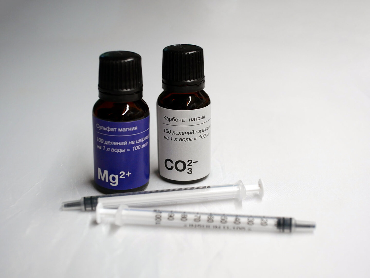 В сульфате магния для нас самое главное — это ион магния (Mg2+), а в гидрокарбонате натрия — гидрокарбонат-ион (HCO3-). В мировом кофейном сообществе эти вещества получили известность в 2015 году, когда американский материаловед из MIT Кристофер Хендон и, на тот момент, двукратный победитель Чемпионата бариста Великобритании Максвелл Колонна-Дэшвуд провели совместные эксперименты и написали по их результатам книгу Water for Coffee. В книге они сформулировали, что такое «идеальная» вода для заваривания кофе с точки зрения пропорции магния и гидрокарбонатов.