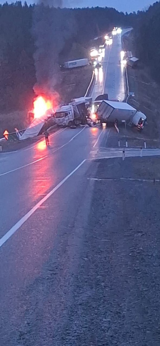 Вчерашняя авария, несколько машин сгорело, один водитель погиб.