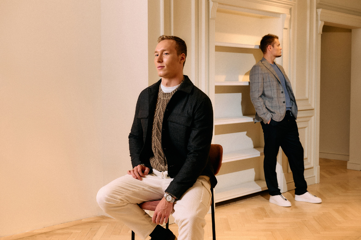 Чемпионы мира и Европы по плаванью Андрей Минаков и Максим Ступин приняли участие в фотосессии для сети бутиков «Кашемир и Шелк». Спортсмены поучаствовали в рекламной кампании коллекций ведущих итальянских брендов — Massimo Alba, Peserico, Agnona, EREDA, Zanellato и Santoni в новом осенне-зимнем сезоне. Съемка проходила в различных локациях: в роскошных исторических интерьерах и на улицах современного города, что подчеркнуло универсальность образов для разных сценариев жизни. Изюминкой кампании стала оригинальная фотосессия в бассейне — где молодые люди позируют в воде прямо в одежде. Герои фотосессии выбраны неслучайно: чемпионы воплощают силу спортивного духа, а люксовая одежда добавляет им утонченную эстетику итальянской моды. Андрей Минаков — выпускник Стэнфорда, действующий рекордсмен России в плавании на 100 метров баттерфляем, многократный чемпион России и заслуженный мастер спорта России. В августе 2025 он взял золото на Чемпионате Мира в Сингапуре. «Съемка оставила только прия
