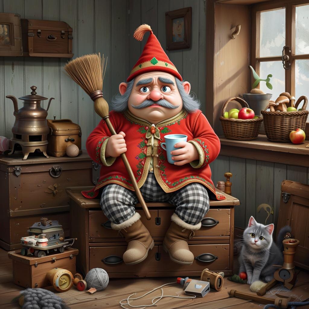 Недовольный домовой Жил-был в старом деревянном доме сердитый и недовольный домовой по имени Ворчун. Он давно поселился в доме и привык к порядку, удобству и уюту. Но вот беда: семья, жившая в доме, переехала, а новая семья оказалась совершенно не такой, как предыдущая. Новая хозяйка, бабушка Надежда, принесла с собой маленькую внучку Лизу, кота Мурзика и попугая Кешу. Животные и девочка оказались шумными и неаккуратными. Воробей чирикал и хлопал крыльями, кот лазил по полкам и сбрасывал тарелки, а девочка играла и громко смеялась. Домовой, привыкший к тишине и спокойствию, был возмущён и сердился: — Совсем одичали люди, никакой культуры! Куда катится мир? Не уважают хозяев дома! Ворчун решил показать новой семье, кто в доме хозяин. Ночью он спрятал ботинки Надежды, перевернул кастрюлю с вареньем, поломал стул и запутал провода у телевизора. Утром бабушка, девочка и животные обнаружили беспорядок и расстроились. Бабушка вздохнула: — Вот видишь, Лиза, как важно беречь порядок в д