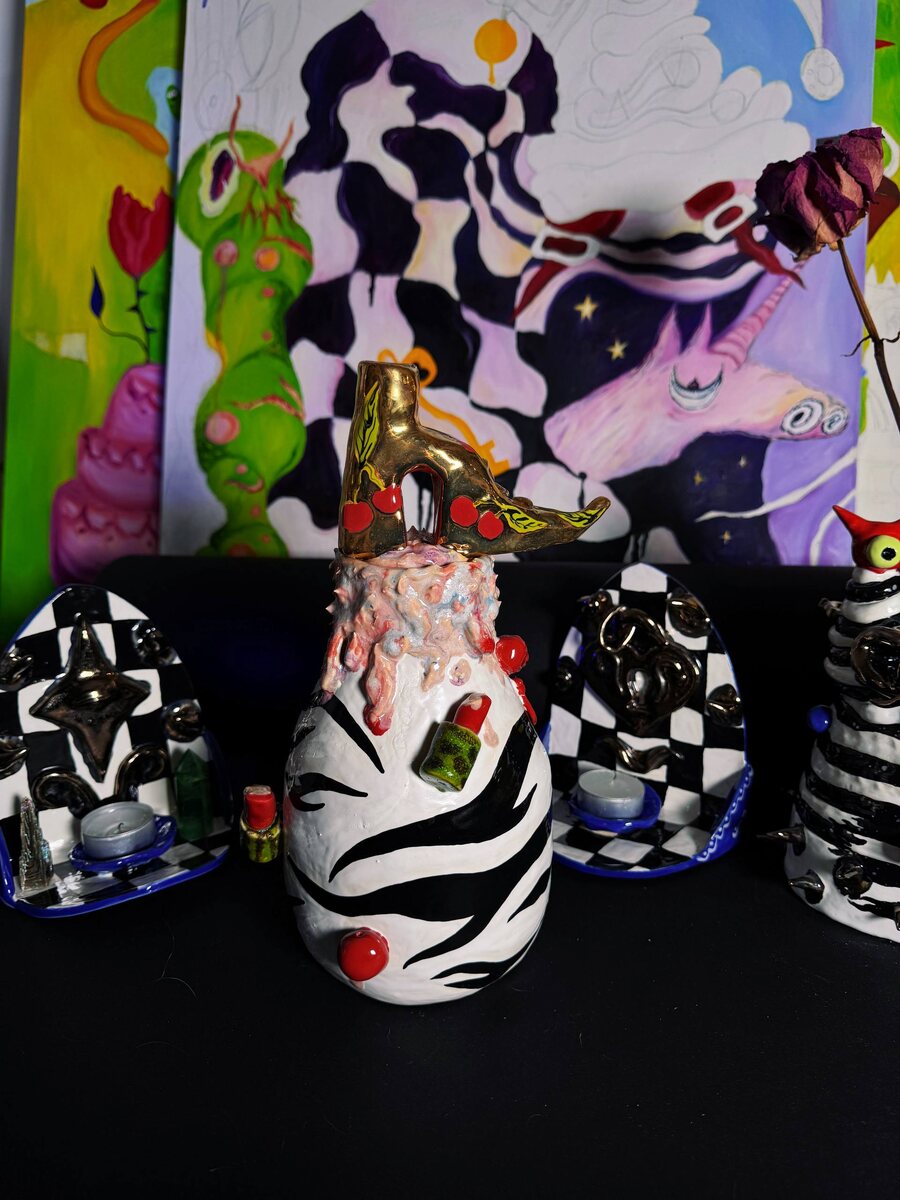 Готовая❤️🔥⚡️⚡️⚡️ Ваза и подсвечник, 2 в 1😇 Керамика, глазури, золото, ручная лепка и роспись Декаданс Короля Луи💥 Эпизод: вышагивая по замку Луи был так неосторожен что макнул свою золотую туфельку в лежащий на полу торт… падение произошло стремительно, но как всегда прекрасный Луи не потерял головы, и туфли тоже ✨