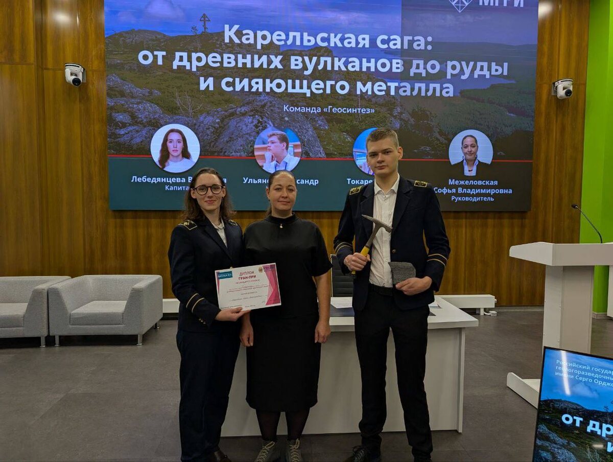 Команда «Геосинтез» из МГРИ стала абсолютным победителем конкурса «Уникальный туристический маршрут» в рамках фестиваля «Наука 0+»! 👏 Поздравляем наших героев: 🔹 Лебедянцеву Викторию (РМ-23) 🔹 Ульянова Александра (РМ-23) 🔹 Токареву Алёну (РФ-22) 🔹 И, конечно, руководителя команды — доцента кафедры общей геологии и геокартирования Межеловскую Софью Владимировну 🗣️ Вчера ребята защитили свой авторский маршрут «Карельская сага: от древних вулканов до руды и сияющего металла» - путешествие по Карелии, где наука, природа и история сливаются в одну увлекательную историю. 📍 Финал студенческого творческого конкурса прошёл на площадке РЭУ им. Плеханова при поддержке Русского географического общества. Участники соревновались в 5 номинациях: 🇷🇺 Лучший туристический маршрут патриотической направленности «Дорогами Победы» 🍽️ Лучший туристический маршрут гастрономической направленности «Вкусно о России» 🏭 Лучший туристический маршрут промышленной направленности «Стальное сердце России» ?