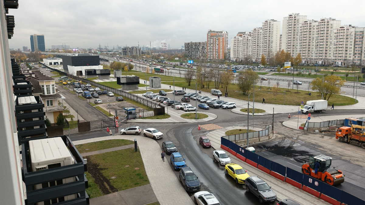 Вот весь огромный пятак, где в центре кадра стоит жёлтый трактор, это именно незаконченное место, он там ещё и отбойником кромки ровняет. Всё остальное готово под ключ, вся асфальтоукладочная техника уже вывезена. Значит опять всё откладывается, ибо они когда-то потом будут руками класть и ручной трамбовкой приводить к уровню...