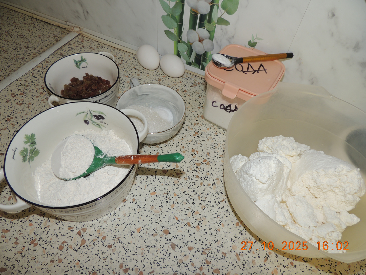 В этой статье делюсь с Вами рецептом СЫРНИКОВ, которые готовятся без масла. Я не буду их долго вымешивать, жарить, добавлять манку и т.д. Все готовится элементарно. Быстро и вкусно. Рецепт, просто находка для ЗАВТРАКОВ. Вместе с выпечкой у Вас уйдет 20 минут. Из данного количества получилось 23 штуки. Можно сделать размером поменьше. Тогда их выйдет больше! После полного остывания я раскладываю по пакетам и убираю в заморозку. Потом с вечера достаю нужное количество на завтрак. И утром наслажаюсь со сгущенкой или сметаной! Не забываем, на ЗАВТРАК НАМ МОЖНО ВСЕ!!!))) РЕЦЕПТ: Творог любой жирности, у меня 5% -800 гр. Яйцо 2 шт. Сахар 4 ст.л. Соль1/2ч.л. Ванильный порошок 1/2 ч.л.(забыла добавить) Разрыхлитель пакетик 10 гр. или 1 ч.л. соды без верха. Изюм 100 гр. (по желанию) Мука 8 ст.л. (на каждые 100гр. творога-1 ст.л.) Выпекала в разогретой до 170 градусов духовке 12-14 минут. Всего Вам сырного и творожного))))