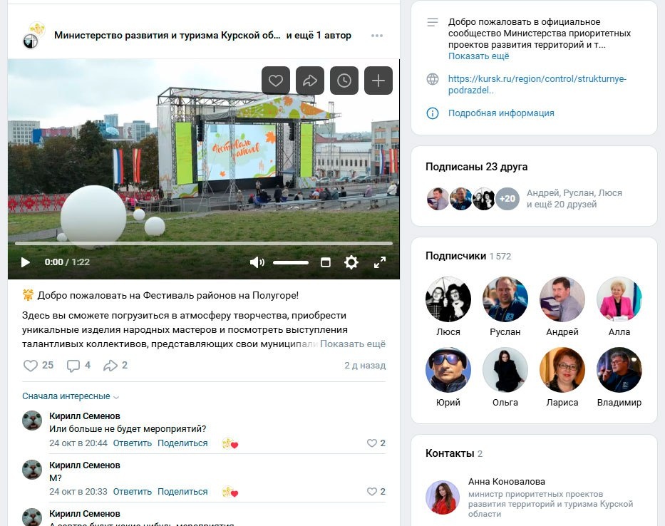 В Курской области упраздненное министерство продолжает вести страницу ВК