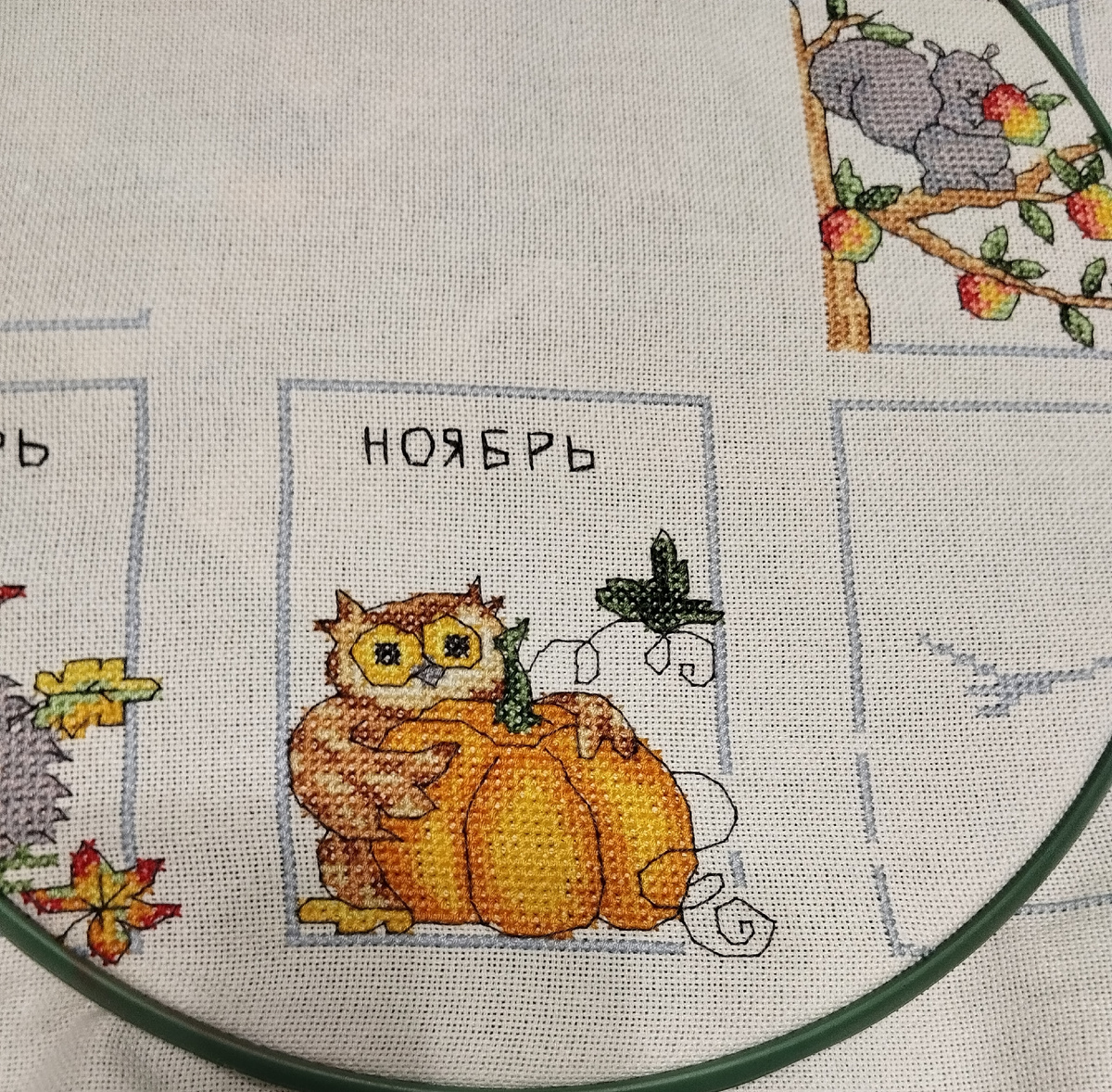 Закончила вышивать "ноябрь" И теперь всё 3 осенних месяца готовы!