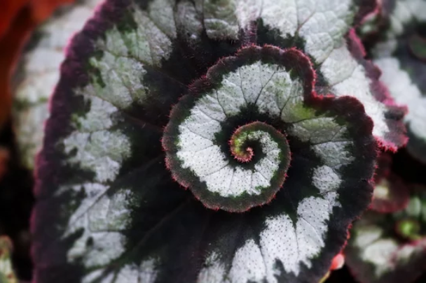 Очень красива миниатюрная бегония Бауэрна (В. boweri), ее изящные листья на тонких черешках раскрашены крупными светлыми пятнами на более темном розовато-зеленом фоне.