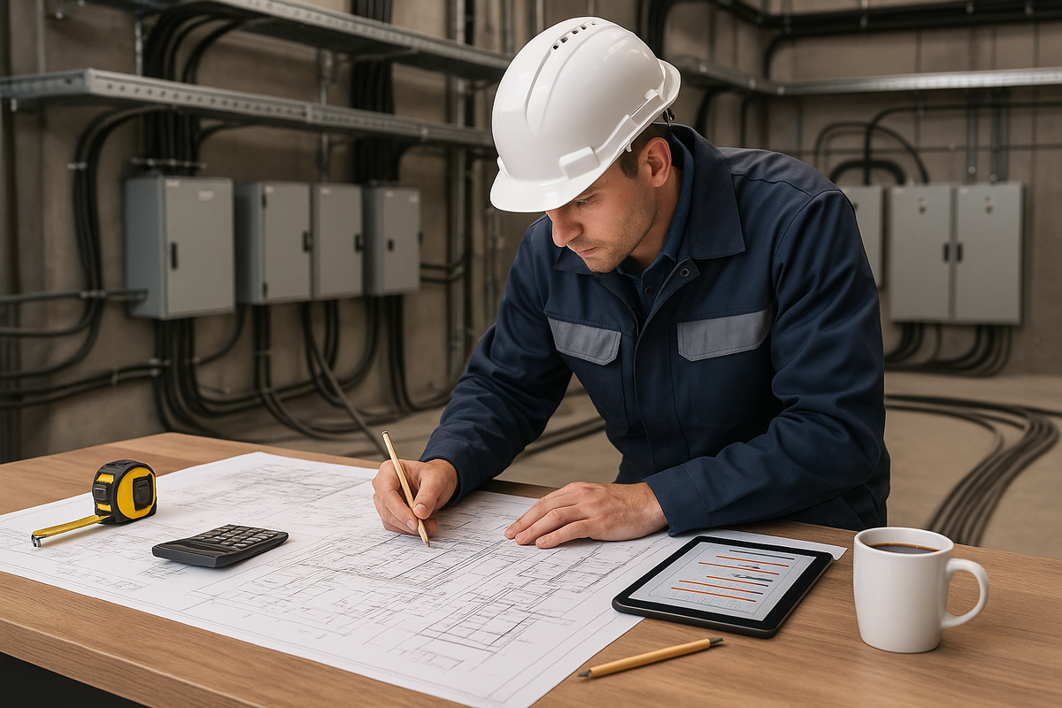 Планирование электромонтажных работ определяет последовательность, ресурсы и контрольные точки проекта электроснабжения. Ошибки на этом этапе приводят к срывам сроков, перерасходу бюджета и нарушению требований ПУЭ, ГОСТ и ПТЭЭП. Перед проектированием необходимо получить и проанализировать: Эти данные формируют основу расчётов и определяют выбор схемы электроснабжения. На этом этапе выполняется проект электроснабжения: Все решения должны соответствовать ПУЭ-7, ГОСТ 32144-2013, ГОСТ Р 50571.5.54-2013, СП 256.1325800.2016. Грамотно построенный график работ включает: Для минимизации простоев планирование должно учитывать: Рекомендуется вести ведомость потребности ресурсов по видам работ. На всех стадиях должен действовать внутренний контроль по чек-листу: Чёткая структура, контроль нормативов и учёт мелочей на старте исключают аварии и переработки.