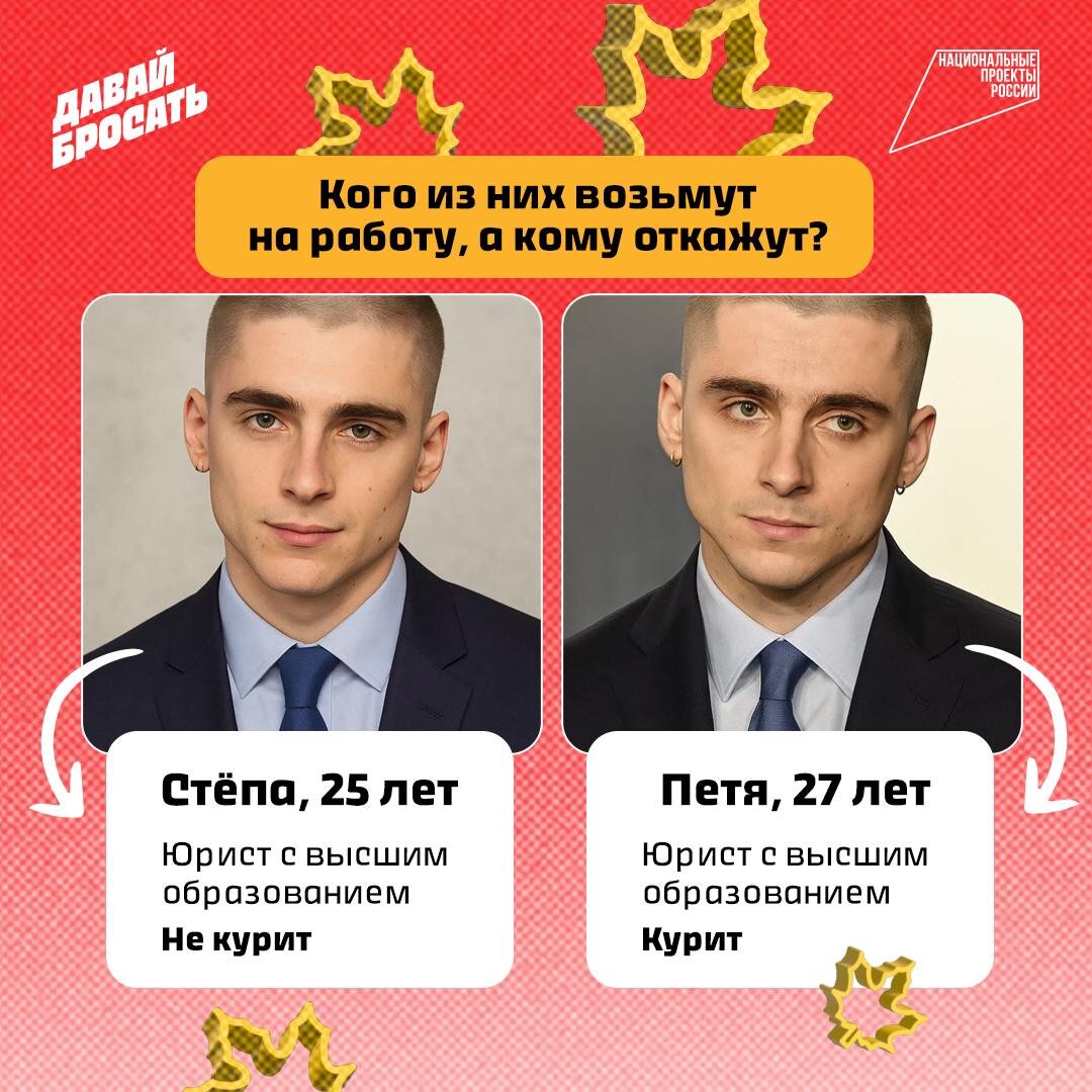 🫣 Если ответил, что скорее не возьмут Петю, то ты абсолютно прав — людям всё чаще начали отказывать в работе по причине курения