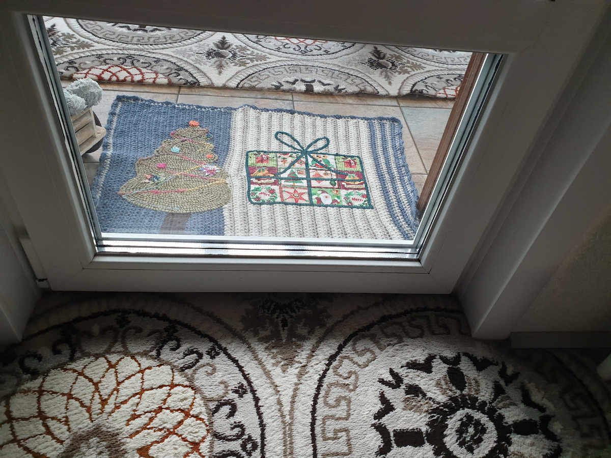 Почему я так рано ( в октябре) сделала такой коврик? Ну во-первых нужно время чтобы все придумать и сделать. Во-вторых, он тематический, и срок его использования в интерьере ограничен. Я планирую его постелить на балконе в самом начале декабря и будет он там до середины января. Потом я его уберу, так как он будет уже не актуален.
