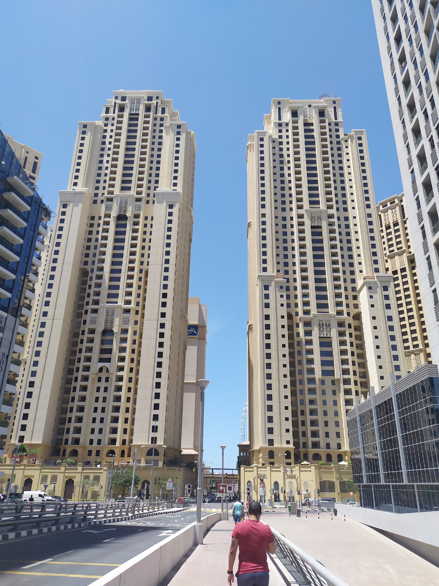 План на сегодня простой-днём пляж,вечером прогулка!В этот раз будем отдыхать на пляже в JBR в Дубай Марина.Доехали туда на метро,всего 4 остановки,потом минут 12 пешком через канальчики по мосту и мы на самом красивом пляже Дубая! Может кто-то скажет,что это за пляж такой,среди каменных джунглей,но мне наоборот нравится!Все высотки,а в них находятся отели,смотрятся очень гармонично и красиво!К тому же на той стороне остров "Blue Water" с колесом обозрения ,которое тоже красиво смотрится! Этот прямоугольный отель с проёмом внутри мне очень понравился!Красиво смотрится,да?Там наверху есть бассейн и ресторан! К тому же в середине апреля здесь комфортная,тёплая водичка!Людей много,лежаков с зонтиками тоже,но цены на них кусаются!А с тенью беда...нет её.Кто мог,под навес укрылся,как и мы.Потому как на солнце и минуты невозможно пробыть!Не представляю каково тут в июле!Хотя нет,немного представляю-как на раскалённой сковородке! Поэтому быстро делаем фото и бежим в воду! Под "Ромаш