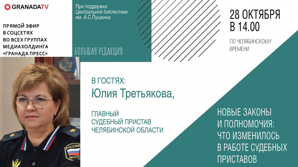 Что это значит для южноуральцев, которые имеют долг по штрафам, алиментам, коммунальным платежам, расскажет Юлия Третьякова, главный судебный пристав Челябинской области. Она станет новым гостем «Большой редакции» медиахолдинга «Гранада Пресс». Также во время эфира журналисты ведущих изданий поговорят с гостем и на другие темы: взыскивали ли в Челябинской области долги в цифровых рублях, растут ли долги жителей региона, и в каких сферах южноуральцы чаще всего оказываются должниками. Свои вопросы смогут задать и зрители. Для этого достаточно оставить комментарий под прямой трансляцией. Во время эфира вопросы зададут гостю.
