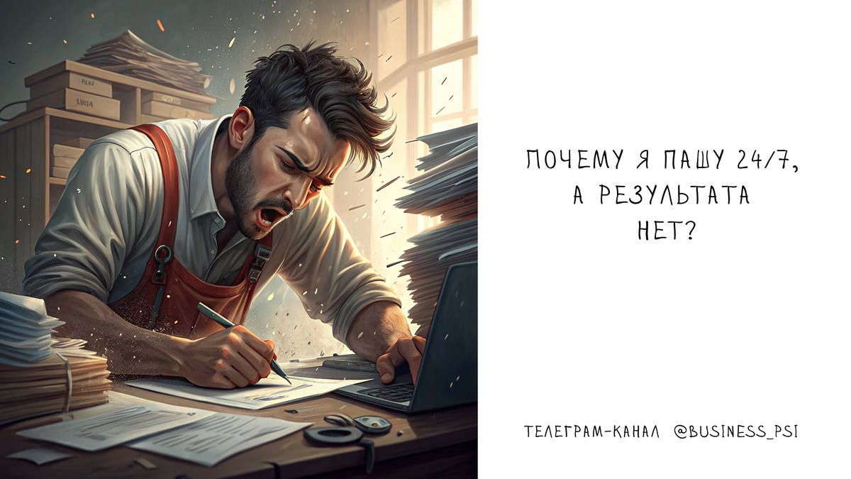 Если работаете на износ, а результата нет - скорее всего дело не в недостатке усилий, а в том, куда направлена энергия. Можно много пахать — но не в ту сторону. И чем сильнее стараться, тем больше отдаляться от того, что действительно важно. Это выглядит так: «Надо просто потерпеть, потом будет легче» Но “потом” не наступает. Потому что в этой гонке нет финиша - только новый круг. Можно продолжать в этом же ритме покуда хватит здоровья и сил. А можно начать работать иначе: - не из напряжения, а из ясности, - не из страха, а из интереса. Почему усилия не дают результата: 1. Вы не можете найти новые решения так как ограничены своим опытом. Чтобы это решить - нужно получить новый опыт. Чтобы долго его не искать - в психотерапии все есть. 2. Перегруженность тревогой - вся энергия в ней, и поэтому недостаток сил на эффективную организацию. Иногда в терапии по несколько месяцев приходится выгружать накопленный запас, чтобы появились силы. 3. Избегание важных действий, ведущих к результату- п