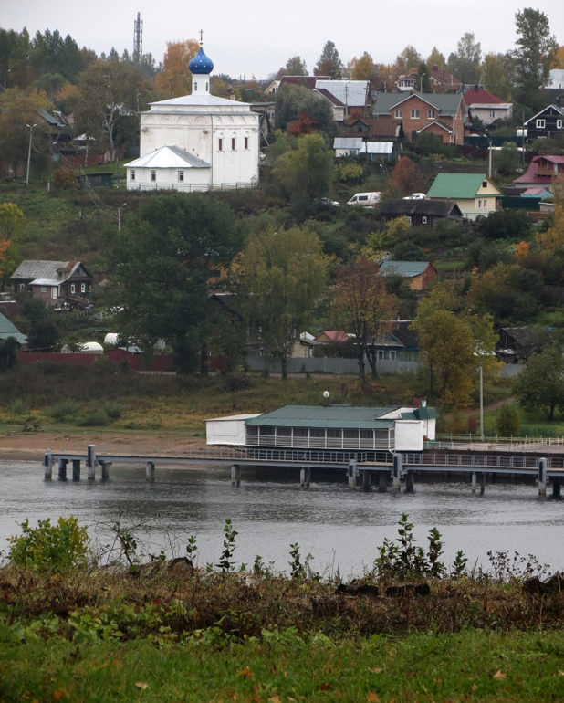 Через овраг стояло село Ново-Благовещенье - его Благовещенскую церковь (1680; кадр выше) я видел через Волгу, а вот ближе подъехать к ней как-то не сподобились. В 1777-м всё это объединили в уездный город Борисоглебск, а в 1822 и его присоединили к Романову. Но фактически Борисоглебск - город одной достопримечательности, коей является господствующий над двумя берегами Волги Воскресенский собор (1652-76):