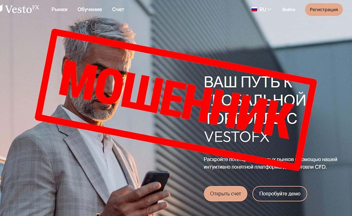 Сайт VestoFX.net позиционирует себя как международного forex брокера, предлагающего торговлю валютами, акциями, индексами, сырьевыми товарами и криптовалютами.