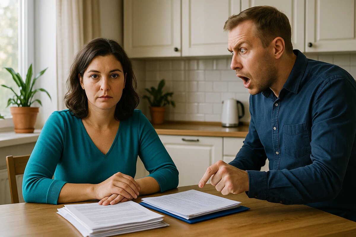 Марина сидела за кухонным столом, перебирая документы на новую квартиру. Договор купли-продажи, выписка из Росреестра — всё аккуратно сложено в папку. Она не слышала, как Денис вошёл. Он стоял в дверях, разглядывая бумаги через её плечо.