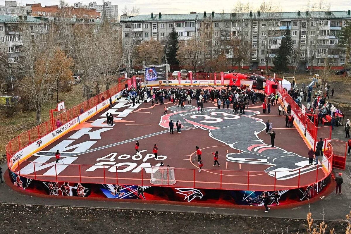 Во дворе дома на улице Путилова, 7В открылось новое многофункциональное спортивное пространство. Здесь будут организованы детские группы. Ребята смогут тренироваться под руководством инструкторов. Зимой все желающие будут играть в хоккей и кататься на коньках, а летом заниматься футболом и баскетболом. Фото: канал губернатора Омской области Виталия Хоценко в МАХ