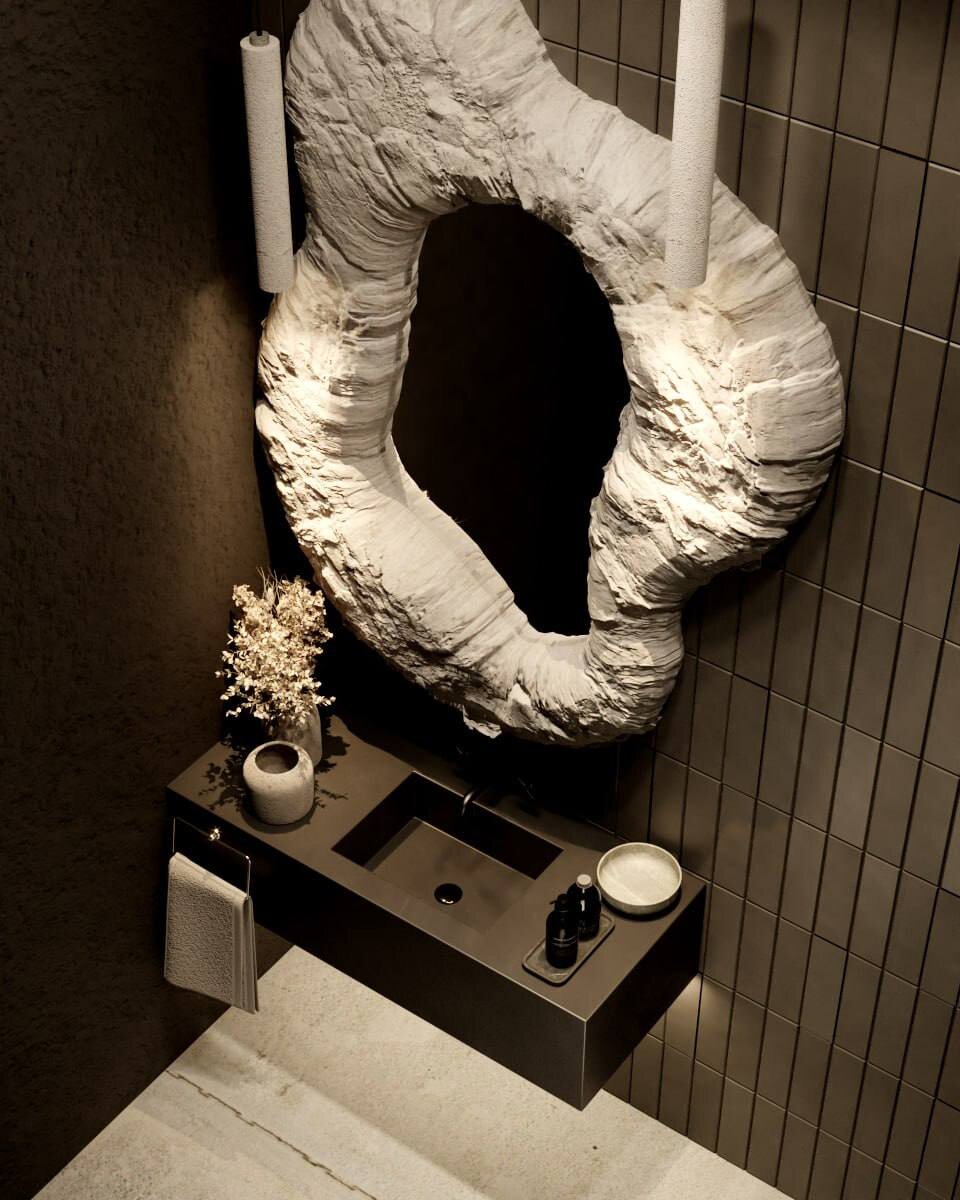 Некое безумие в сан узле из проекта салона красоты ) как вам такая дикость ?) 🖤- прикольно 🤮- не моя тема И помните что это не жилье , задача немножко впечатлить клиентов салона