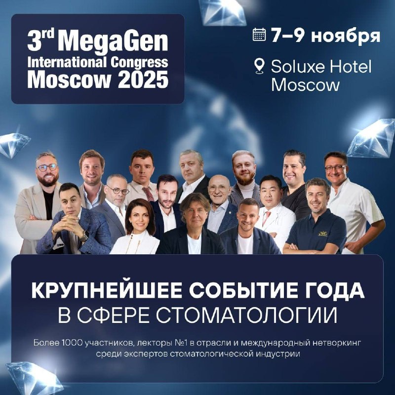 👀Встречаемся на Конгрессе MegaGen! Приглашаем на международный Конгресс MegaGen. 🦷 Это крупнейшее ежегодное отраслевое событие для собственников стоматологий, руководителей и ведущих врачей. Даты проведения: с 7 по 9 ноября 2025 года Площадка: Soluxe Hotel Moscow, г. Москва 📌 Программа: • День 1. Практика управления: экономика, оргструктура, продажи имплантологических планов, маркетинг без лишних затрат. • Дни 2 и 3. Медицина: выбор тактики, полные реконструкции, тотальные кейсы, актуальные протоколы. • Комьюнити лидеров. Возможность сверить подходы, задать вопросы, наметить план развития на 2026 год. 🦷 DentalPRO — партнёр мероприятия. На нашем стенде вы узнаете о будущем стоматологии. А также о том, как сделать это будущее проще для себя и своих сотрудников. Регистрируйтесь прямо сейчас, чтобы забронировать лучшие места! ⚡️ #Мероприятия