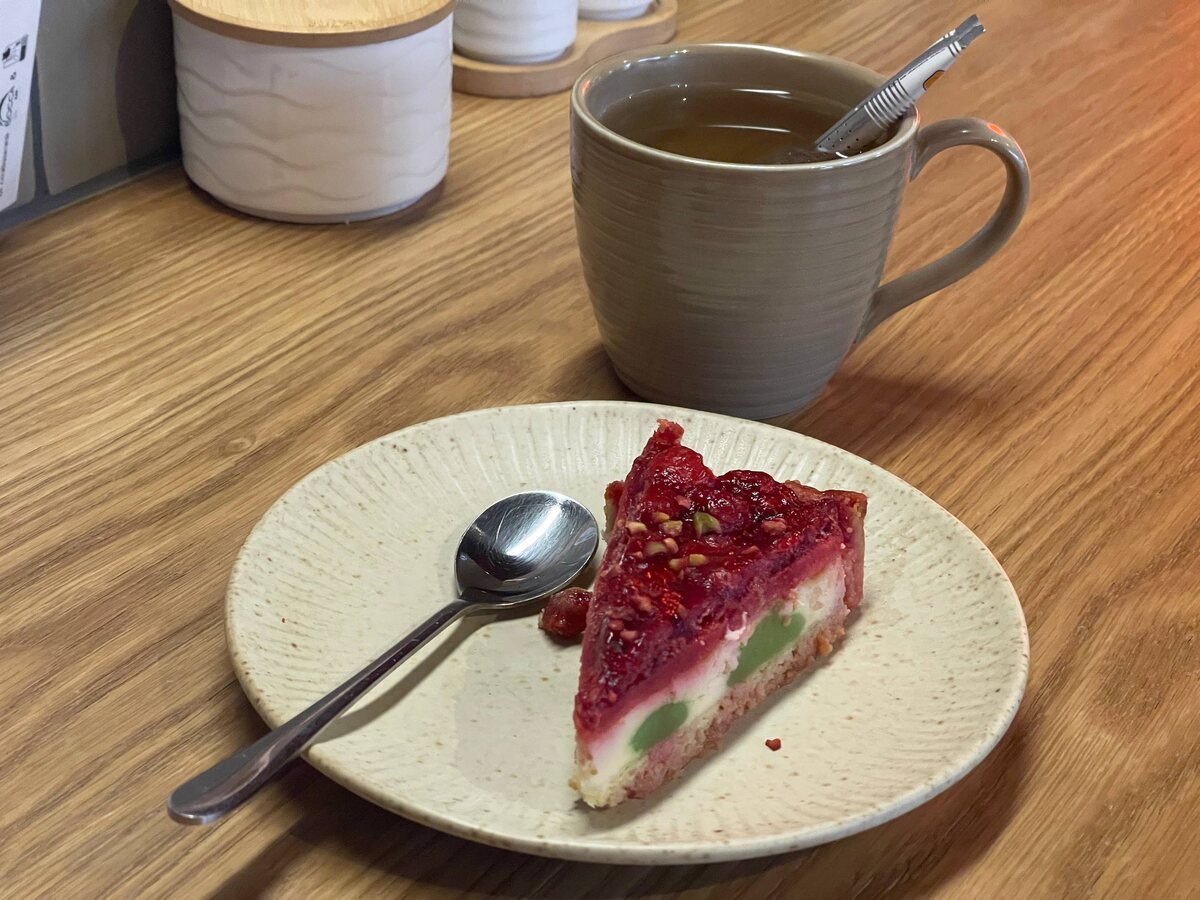 А это я в Нами пришел поработать. На самом деле ем вкуснейший тарт и запиваю чаем ❤️