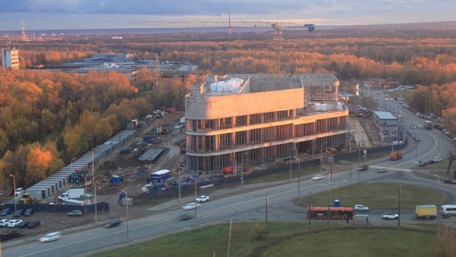 В Казани завершено строительство монолитных каркасов Центра научных исследований и масштабирования химических технологий СИБУРа. На этот процесс было использовано около 15 тысяч кубометров бетона. В настоящее время строители активно остекляют фасады, и их готовность составляет 55%.